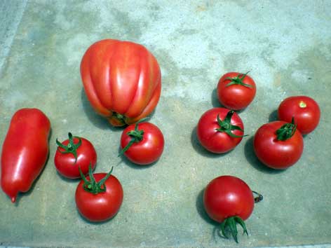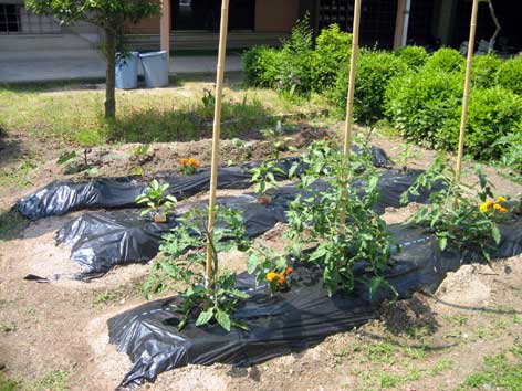 | この菜園で育てているもの 4種類のトマト、西瓜、カラーピーマン、キュウリ、ナス、トウモロコシ、バジル、大葉、ヒマワリ、コスモスなどを育てています。 ![]() ↑手前から、トマト、カラーピーマン、ナス