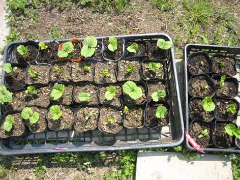 ゴーヤプロジェクト用の苗。全クラス分栽培予定…。やはり予定は未定。 (その後のゴーヤの記録は、活動記録にて) 6月中旬の科学部菜園